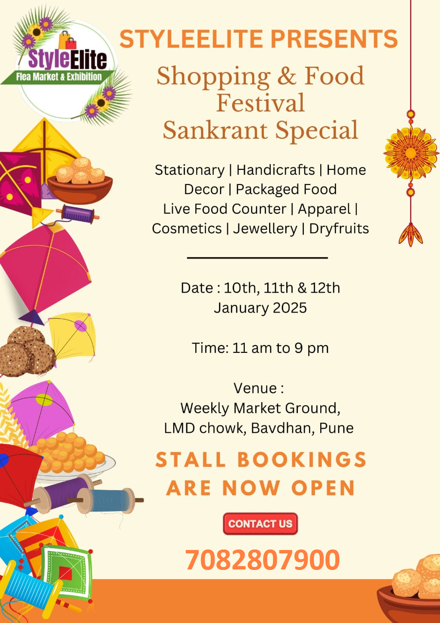 Stall Booking In Upcoming Sankrant Special Shopping & Food Festival At Weekly Market Ground, LMD Chowk, Bavdhan, Pune on 10th,11th & 12th January 2025 Call 7082807900